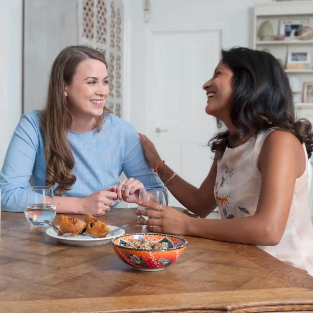 | "Me siento mal por comer eso." | "Disfruté de esta comida y ahora me siento satisfecha." |
