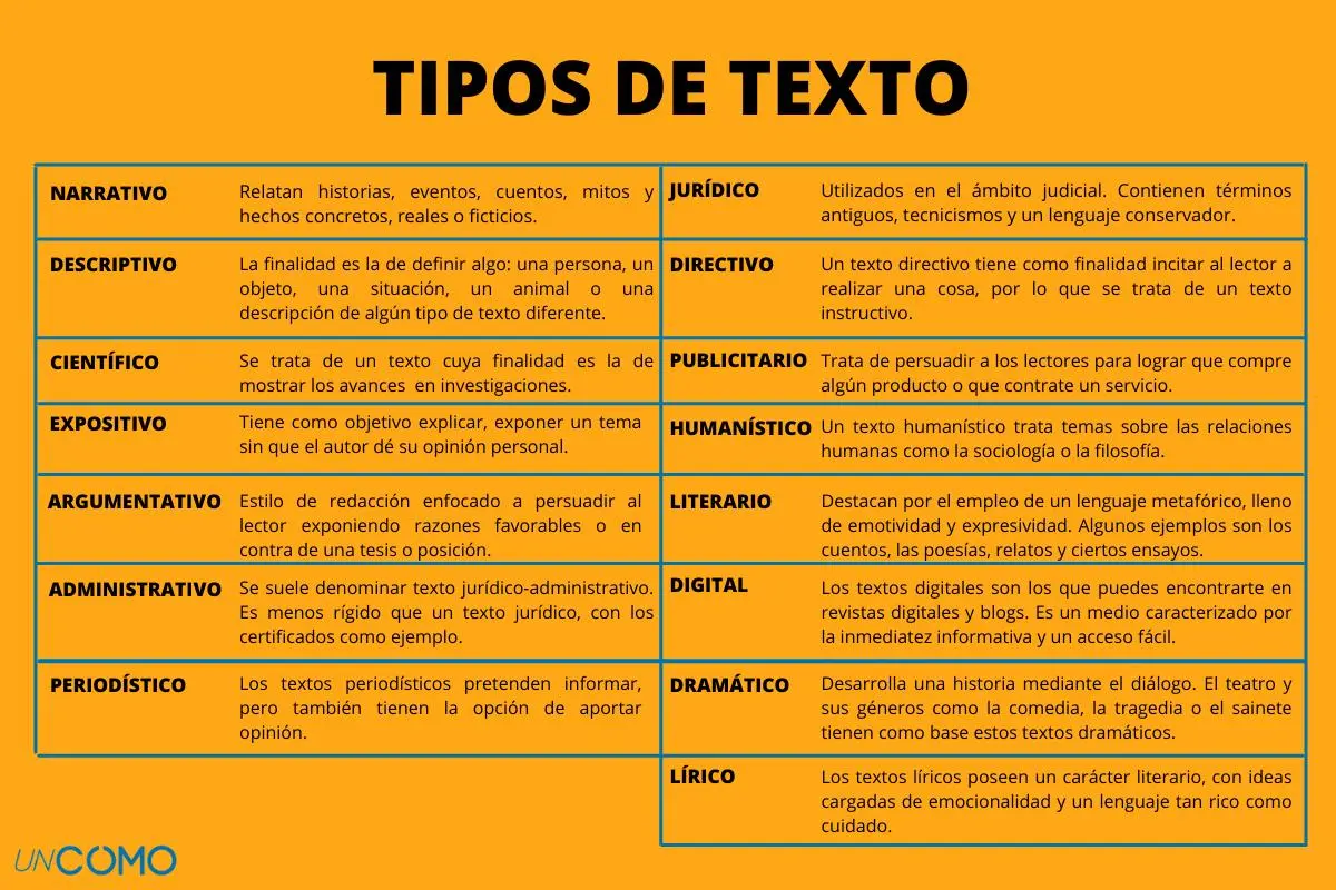 | Tipo de Texto | Características | Ejemplos |