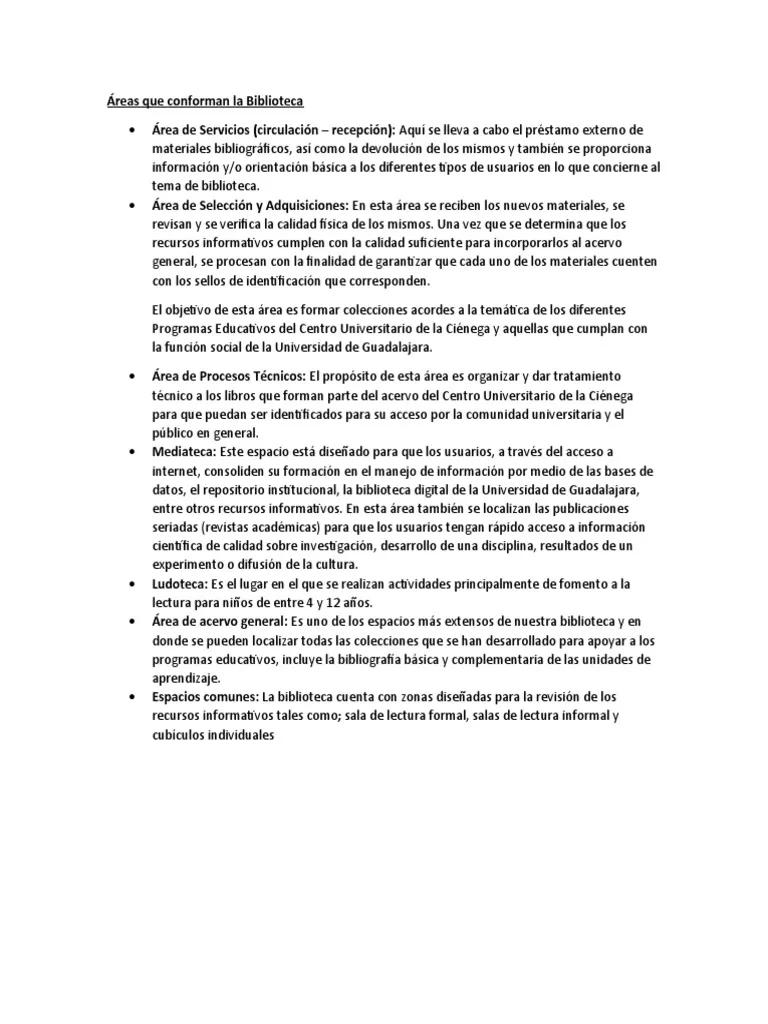La organización de las áreas en una biblioteca puede variar dependiendo del tipo de biblioteca y su público objetivo. Por ejemplo:
