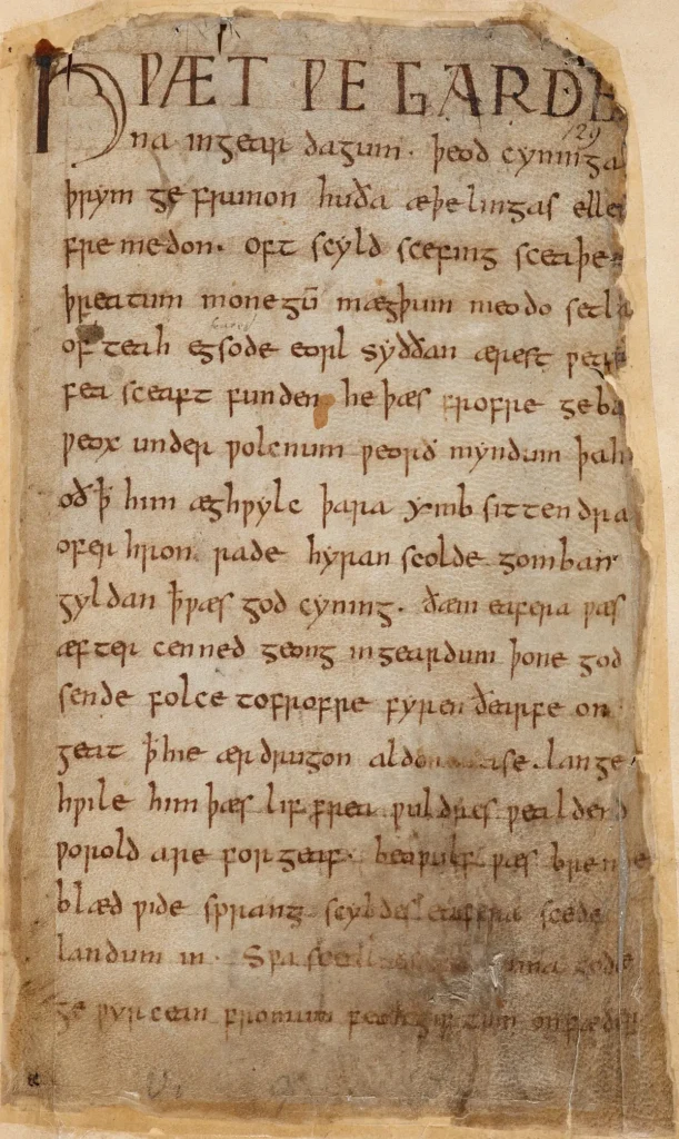 El Manuscrito Beowulf tiene una rica historia. Su propietario más antiguo conocido fue Lawrence Nowell, en el siglo XVI, de ahí el nombre Códice Nowell. El manuscrito pasó a formar parte de la Biblioteca Cotton, sufriendo daños irreparables en un incendio en 173A pesar de los intentos de restauración, parte del manuscrito se ha perdido. El Proyecto Beowulf Electrónico utiliza técnicas avanzadas para la digitalización y preservación del poema, revelando algunos de los símbolos perdidos.