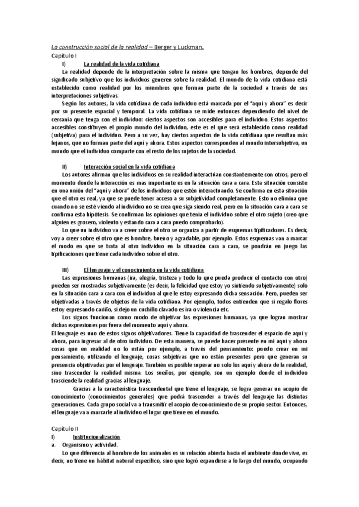 Berger y Luckmann nos ofrecen una perspectiva profunda sobre cómo la realidad no es algo dado, sino un producto de la construcción social. Su teoría ilumina la importancia de la interacción, el lenguaje, la institucionalización y la socialización en la formación de nuestro entorno social y personal. Comprender este proceso nos permite cuestionar las estructuras sociales, las creencias y las normas, y apreciar la naturaleza dinámica y siempre cambiante de la realidad.