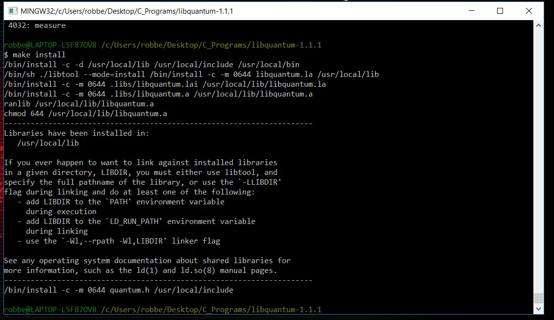 La mayoría de las librerías necesitan ser compiladas antes de poder ser usadas. Esto a menudo implica usar la herramienta make . Algunos proyectos incluyen un archivo READMEo un archivo INSTALLque describe el proceso de compilación. Este proceso normalmente utiliza el comando configure(o un equivalente) seguido de makey make install. Las opciones más comunes para configureson: