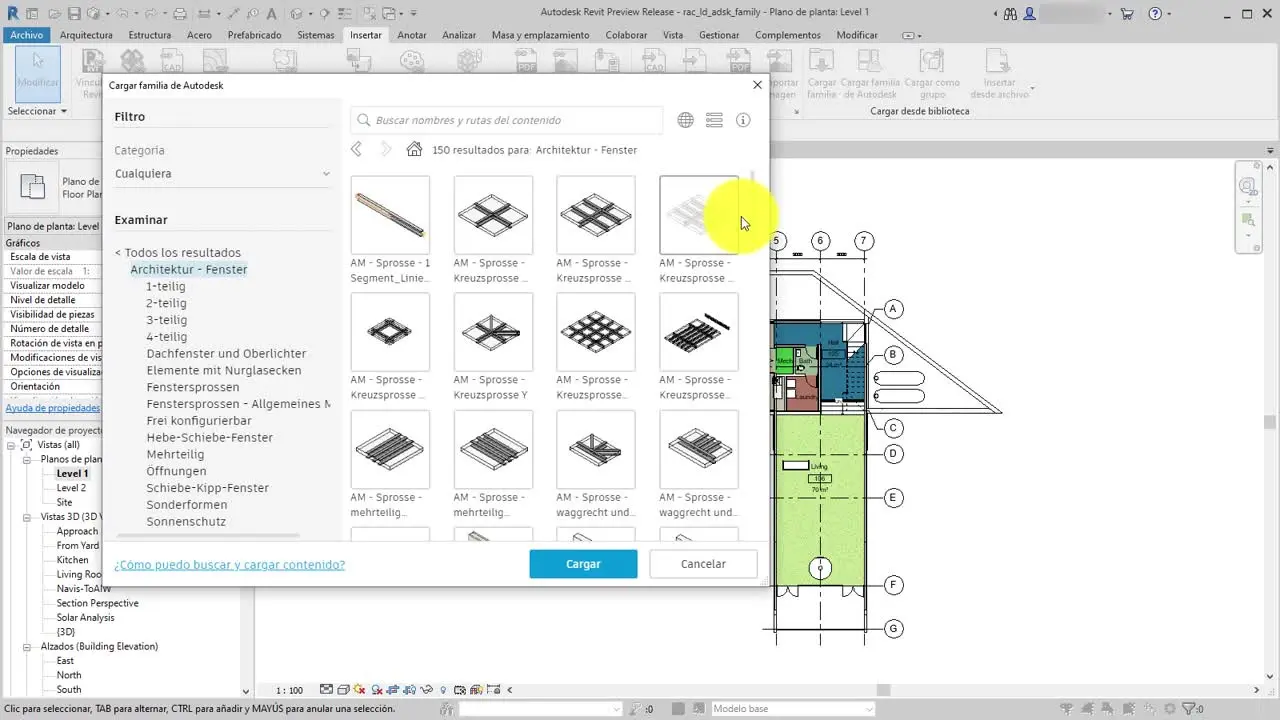 - Cargar: Revit cargará todas las familias contenidas en la librería.