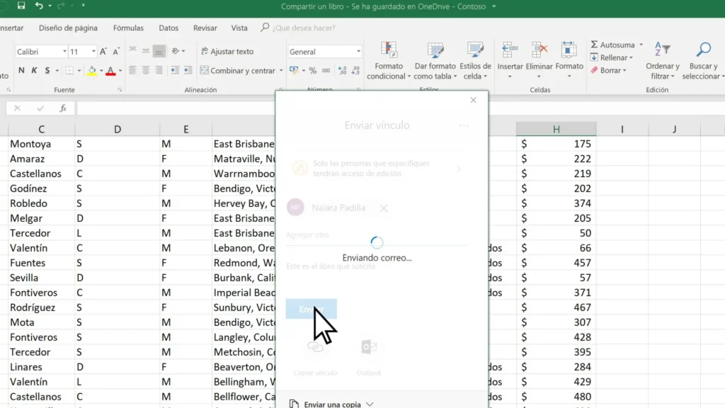 Esta opción es ideal para compartir el libro con un número reducido de personas. Excel te permite enviar el archivo directamente como adjunto en un correo electrónico, lo que facilita el acceso a aquellos que no tengan una cuenta en la nube. Sin embargo, este método puede resultar engorroso para compartir con muchos usuarios o si necesitas controlar las ediciones.