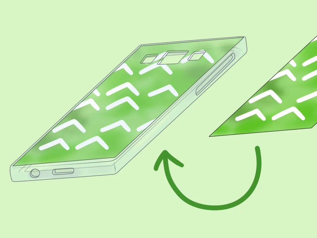 Coloca tu teléfono sobre la lámina de silicona, asegurándote de que la pantalla quede hacia arriba. Envuelve la silicona alrededor del teléfono, cubriendo todos los lados. Utiliza una espátula para alisar la superficie y eliminar arrugas o imperfecciones. Asegúrate de que la silicona quede bien ajustada al teléfono.
