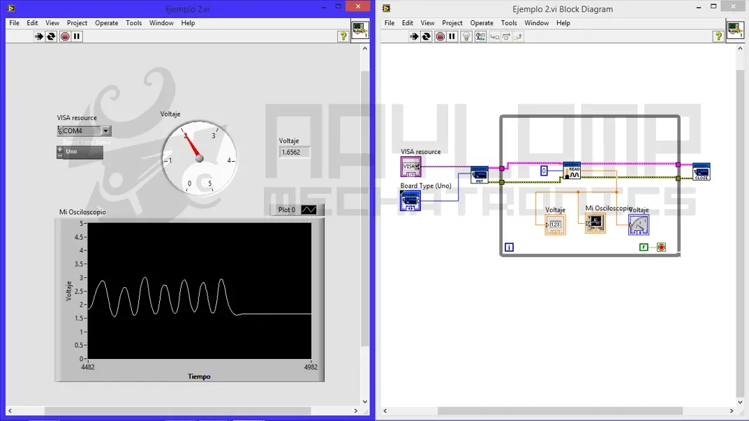 2. Configurar la conexión serie: En LabVIEW, utiliza los comandos de NI-VISA para configurar la conexión serie con tu Arduino, incluyendo el puerto COM, la velocidad de baudios, etc.