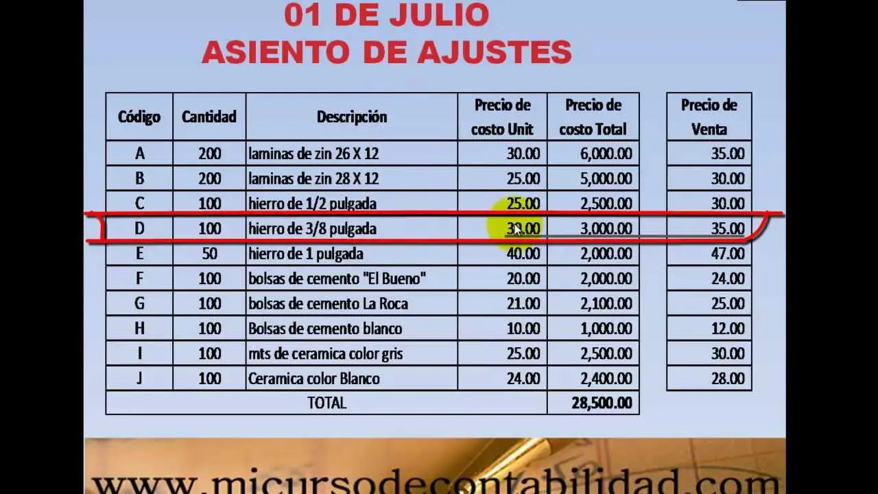 Ejemplo de asiento de ajuste