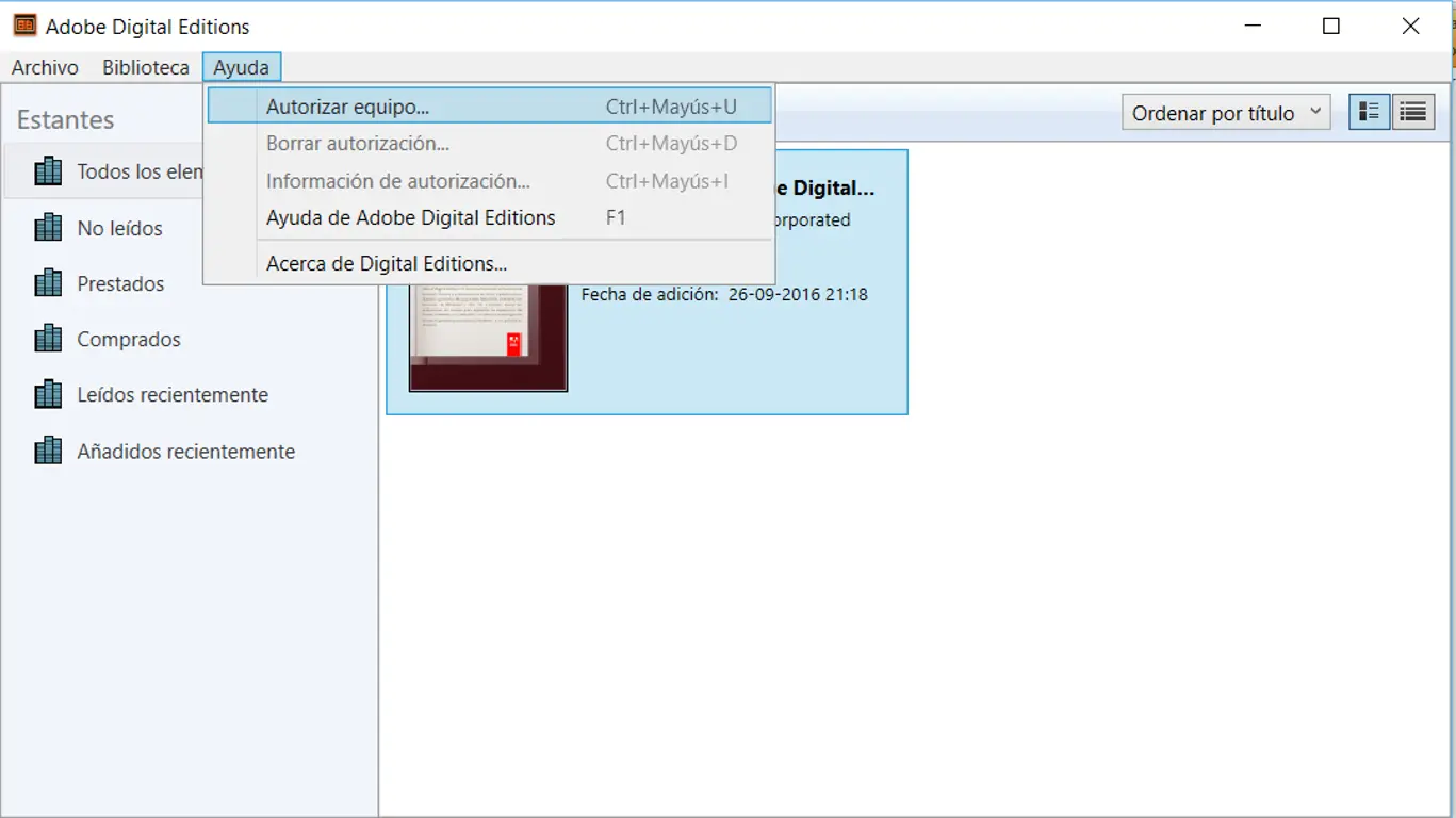 | Libro se abre en otro lector | Configurar ADE como el programa predeterminado para abrir archivos .acsm |