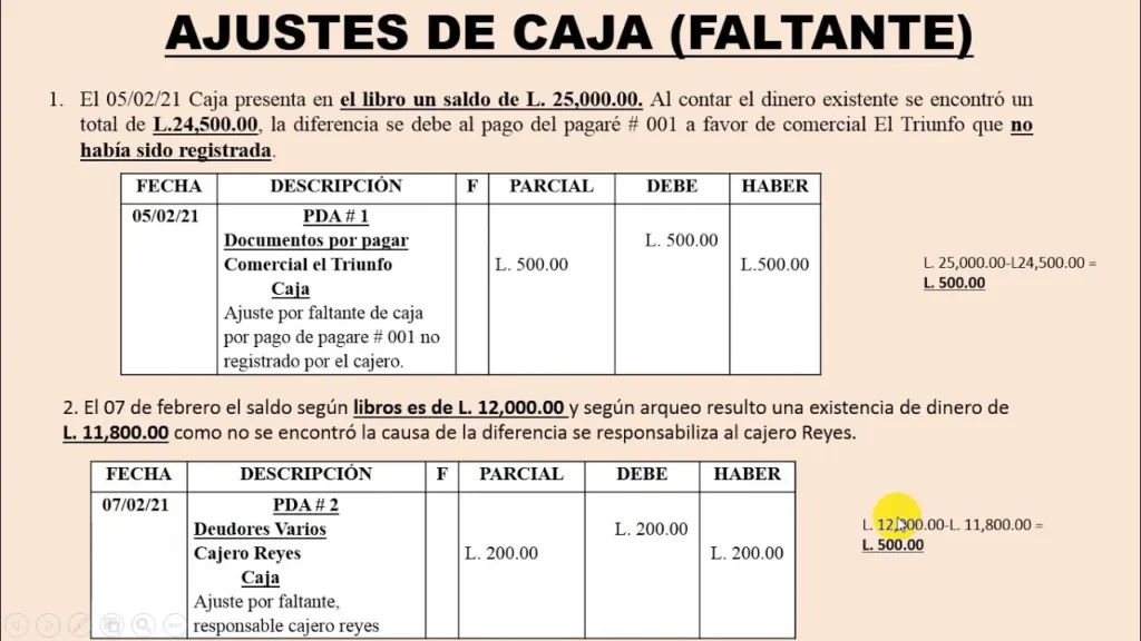Los bancos pueden cobrar comisiones mensuales de mantenimiento o por transacciones específicas. Como estos cargos podrían no registrarse inmediatamente, se necesitan ajustes. Ejemplo: Si el banco deduce una comisión de servicio de $20, un asiento de ajuste reduce el saldo de caja.