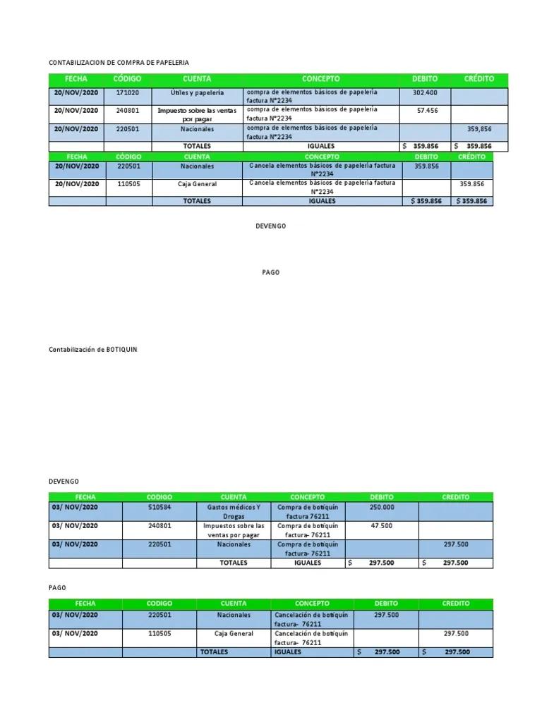 Al adquirir un extintor, se realizarán los siguientes registros en el libro diario: