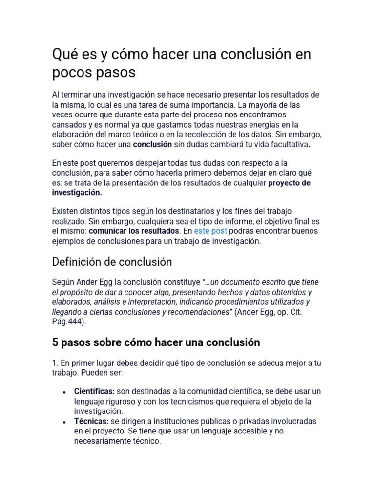 conclusion de un trabajo de ivestigacion de libro - Qué se pone en la conclusión de un trabajo de investigación
