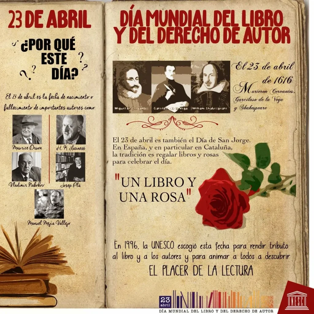 El 23 de abril se ha convertido, sin duda, en una fecha emblemática para el entorno literario. La coincidencia de la muerte de tres gigantes de la literatura, sumada a las iniciativas de la UNESCO y la ONU, ha elevado este día a un nivel de importancia global. Cada año, se llevan a cabo innumerables actividades en todo el entorno para celebrar el libro y la lectura. Ferias del libro, lecturas públicas, talleres literarios, concursos de escritura y un sinfín de actividades buscan mantener viva la llama del amor por la literatura.