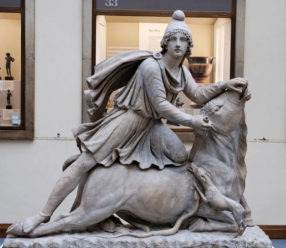 El sacrificio del toro, elemento central de los Misterios Mitraicos, se representaba en relieves de piedra encontrados en numerosos templos. Estos relieves, notablemente similares entre sí, muestran a Mitra matando al toro, rodeado de otros personajes y símbolos, incluyendo un perro, una serpiente, un cuervo y un escorpión. El culto contaba con siete grados de iniciación, cada uno con sus propias responsabilidades y ritos.