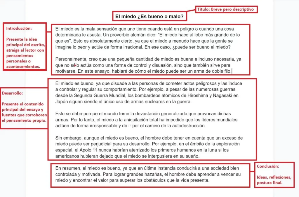 | Ensayo Comparativo | Compara y contrasta dos o más textos, ideas o conceptos. | "Comparación del uso del humor en 'Alicia en el país de las maravillas' y 'El principito'." |