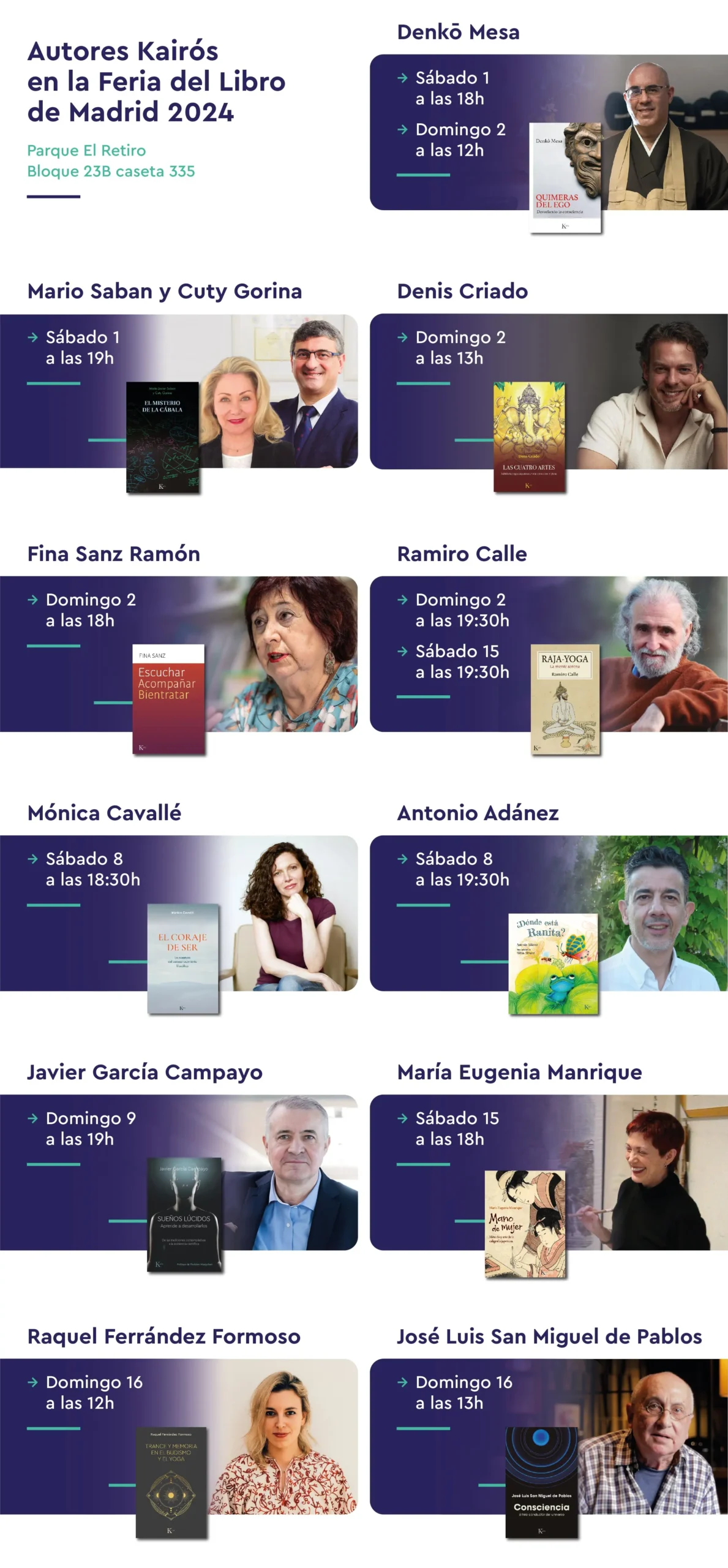 Nota: Esta tabla es solo un ejemplo. La información real debe ser consultada en la programación oficial de la Feria del Libro de Madrid.