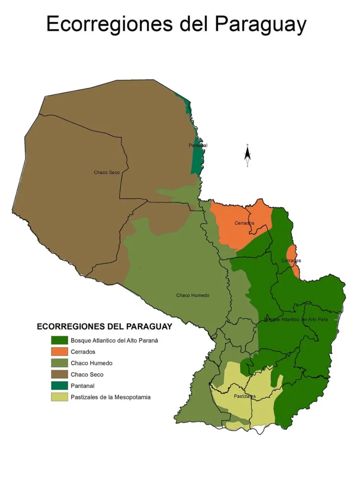 | Chaco Seco | Vegetación xerofítica, bosques bajos espinosos | Armadillo gigante, jaguar, ñandú |
