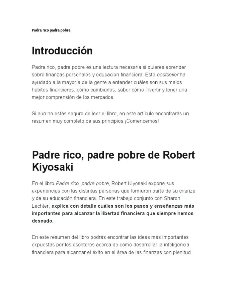 Palabras clave: Padre Rico Padre Pobre, Robert Kiyosaki, libertad financiera, activos, pasivos, educación financiera, inversión, emprendimiento, riqueza, mentalidad millonaria, finanzas personales.