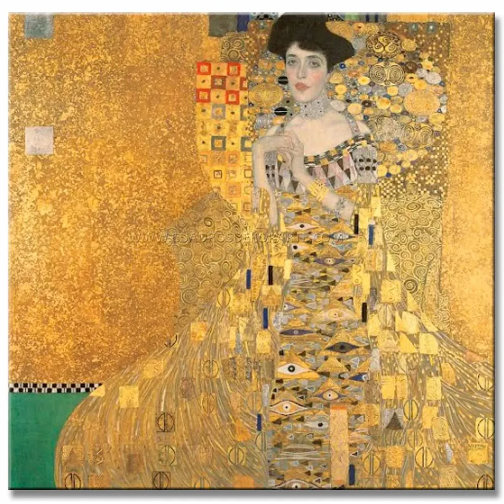 | La Dama Dorada | Gustav Klimt | 1907 | Óleo y oro sobre tela | Estilo Art Nouveau, opulencia dorada |