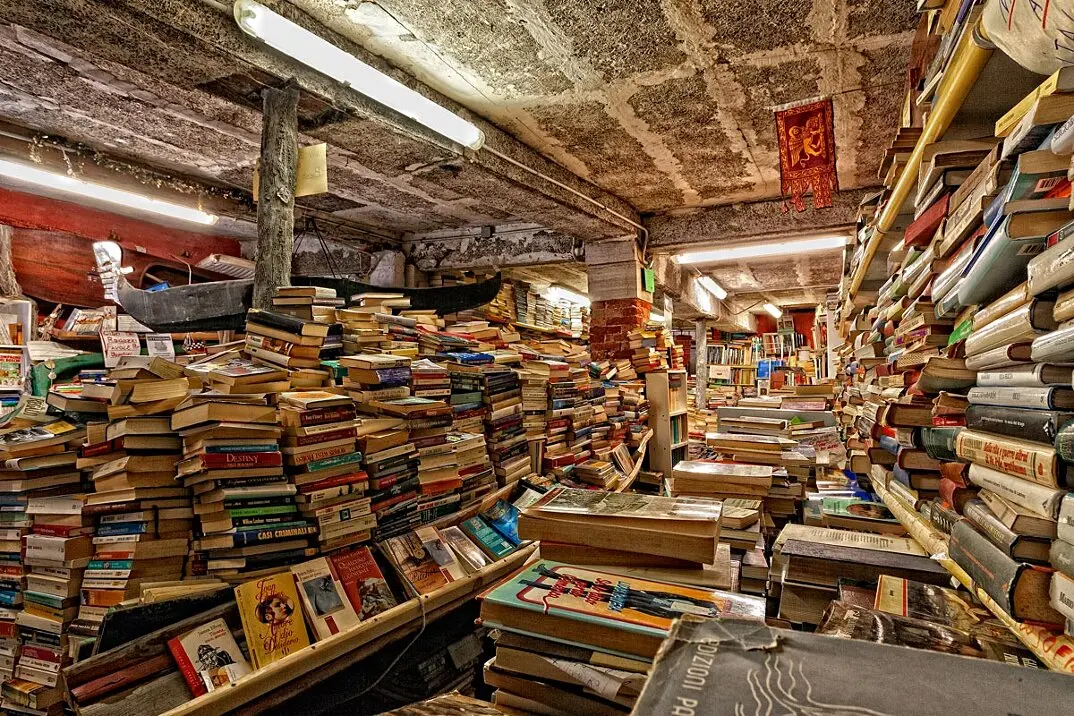 La librería se divide en dos salas principales. La primera se centra en temas de arte, cultura e historia de Venecia. La segunda está repleta de bestsellers y cómics. Esta disposición, sumada a la particularidad de sus “muebles”, la convierte en una experiencia inolvidable para cualquier visitante.