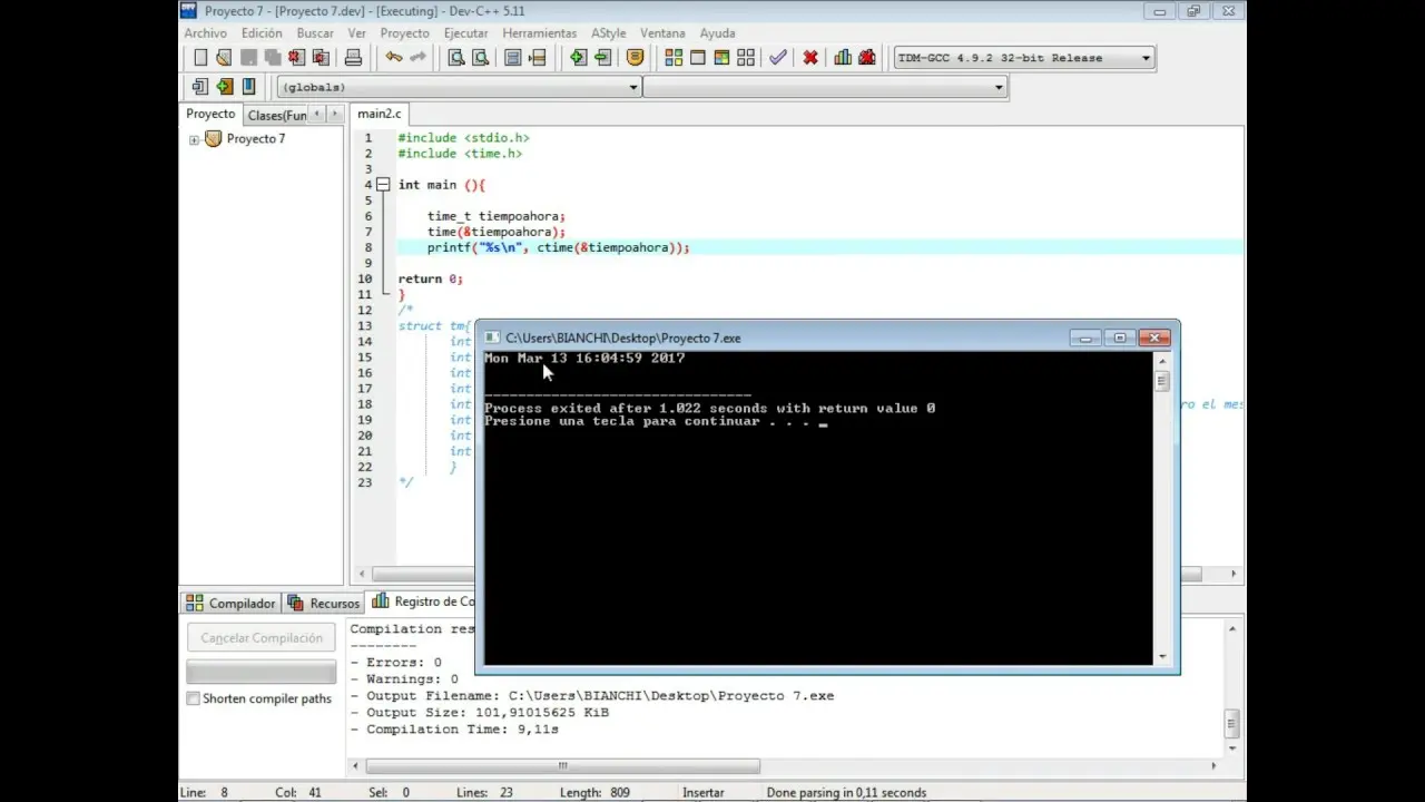time_t) en una cadena de caracteres legible que representa la fecha y hora. El formato es similar a “Sun Dec 17 21:34:26 2023”. - localtime(): Convierte un timestamp en una estructura