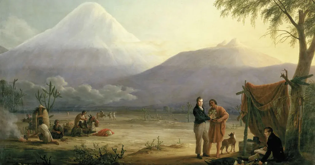 Entre 1799 y 1804, Humboldt, junto con el botánico Aimé Bonpland, realizó una expedición sin precedentes a las regiones equinocciales del Nuevo Mundo. Financiada con recursos propios, esta travesía por Nueva España (México y Centroamérica), Nueva Granada (Colombia y Venezuela), y Perú, supuso un hito en la historia de la exploración científica. Equipados con 42 instrumentos científicos, documentaron con meticulosidad la flora, la fauna, la geografía, y la etnografía de las regiones que recorrieron.