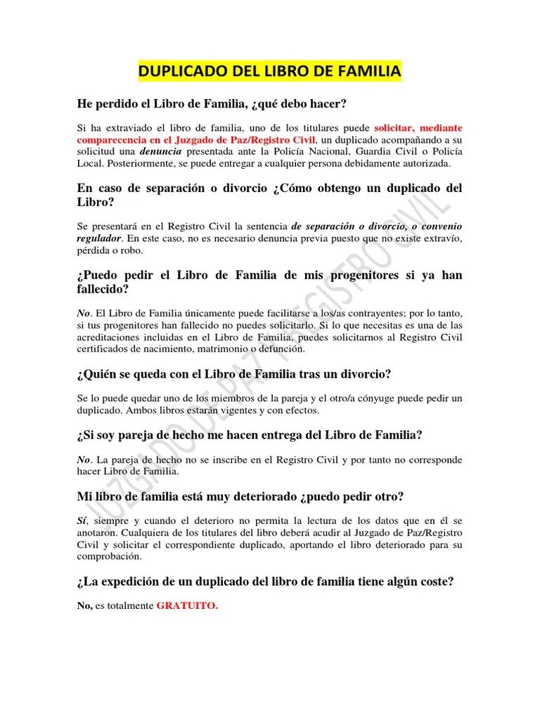 La expedición del duplicado del Libro de Familia suele ser gratuita. Sin embargo, es recomendable verificar las tasas en el Registro Civil correspondiente.