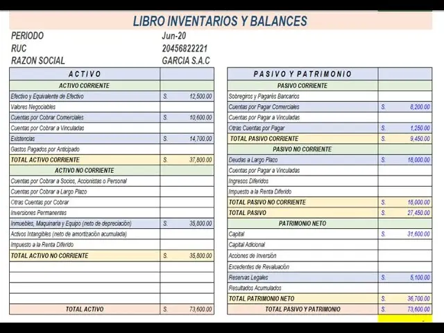 - Inventario: Muestra el detalle de los activos y pasivos de la empresa al comienzo del ejercicio contable. Esto incluye activos como efectivo, cuentas por cobrar, inventarios, propiedades, planta y equipo, etc., y pasivos como cuentas por pagar, préstamos bancarios, etc.
