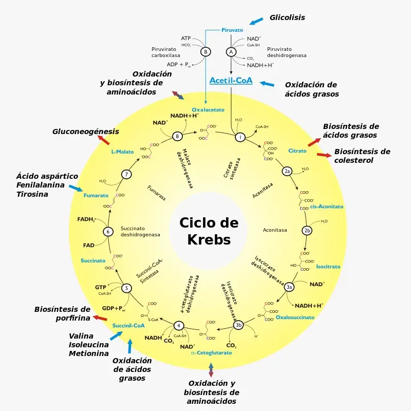 A continuación, se detallan las etapas del ciclo de Krebs :