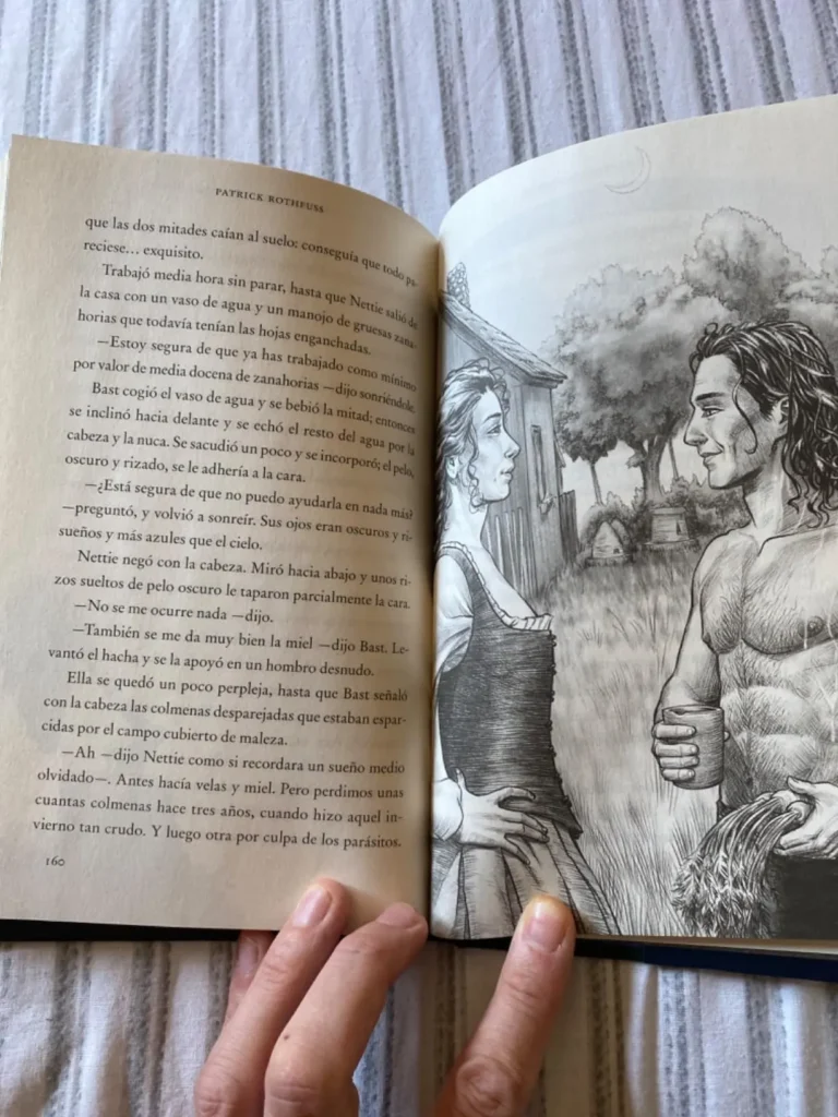 El estrecho sendero entre deseos no es una épica aventura como las que nos tiene acostumbrados Rothfuss. En cambio, ofrece un enfoque íntimo, investigando un solo día en la vida de Bast. La narrativa, como es habitual en el estilo del autor, es cautivadora, llena de detalles que enriquecen la experiencia lectora y nos permiten conectar con el personaje de una manera profunda y personal. El libro es corto, pero intenso, lo que permite una lectura rápida y amena.