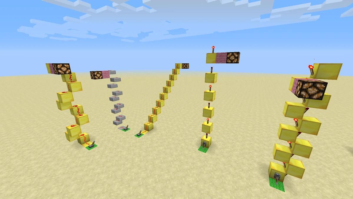 Estos circuitos se encargan de transportar la señal de redstone a través de largas distancias, vertical u horizontalmente. Métodos como escaleras de redstone, antorchas y observadores son utilizados para este propósito.