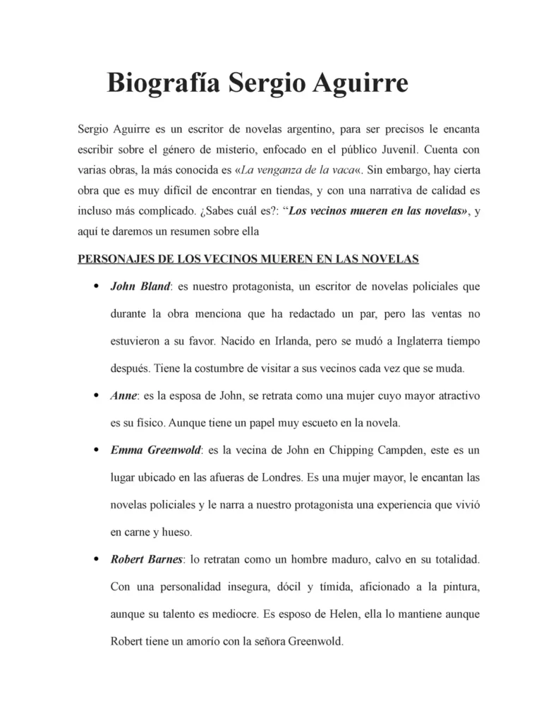 Aunque "Los Vecinos Mueren en las Novelas" es una obra menos conocida que otras de Sergio Aguirre, como "La Venganza de la Vaca", comparte con ellas la capacidad de crear personajes complejos y tramas inesperadas. Mientras "La Venganza de la Vaca" se enfoca en un público juvenil con una narrativa más ligera, "Los Vecinos Mueren en las Novelas" presenta una trama más oscura y compleja, dirigida a un público adulto que disfruta de las historias de misterio y suspense.