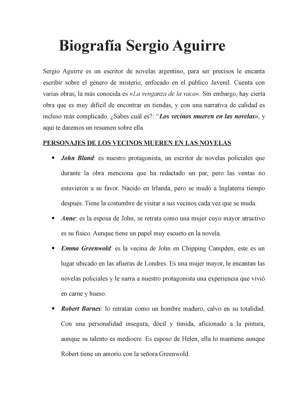 - John Bland: El protagonista, un escritor de novelas policiales con problemas de ventas, cuya vida se ve trastocada por los eventos en Chipping Campden. Su visita a Emma marca un punto de inflexión en la trama.