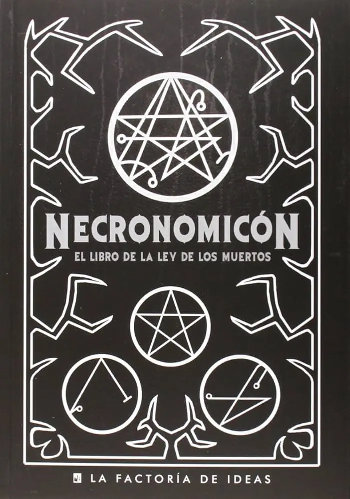 | Necronomicón | Ficticio (H.P. Lovecraft) | Conjuros, rituales, conocimiento prohibido | Ficticio |
