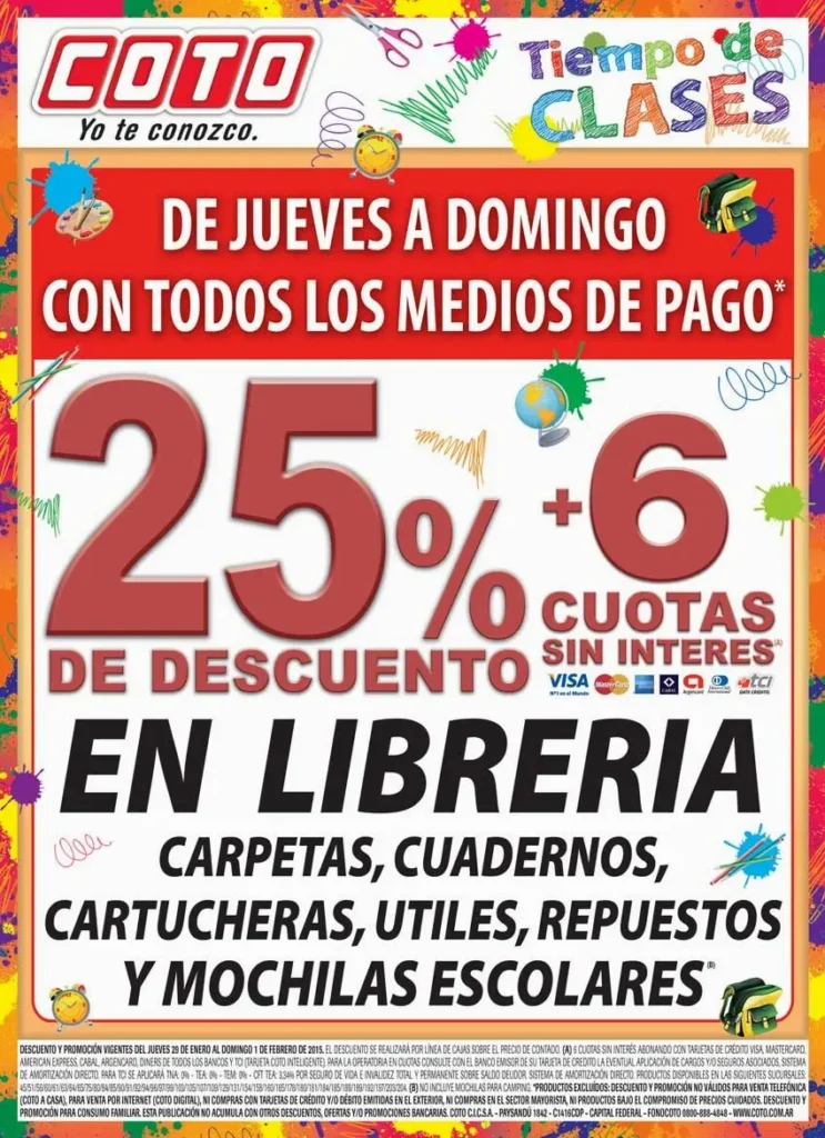 - Comunidad COTO: Los martes y miércoles son días ideales para aprovechar las promociones exclusivas de la Comunidad COTO. Si bien no todas las ofertas se centran en librería, es una excelente oportunidad para chequear si hay descuentos en este sector.
