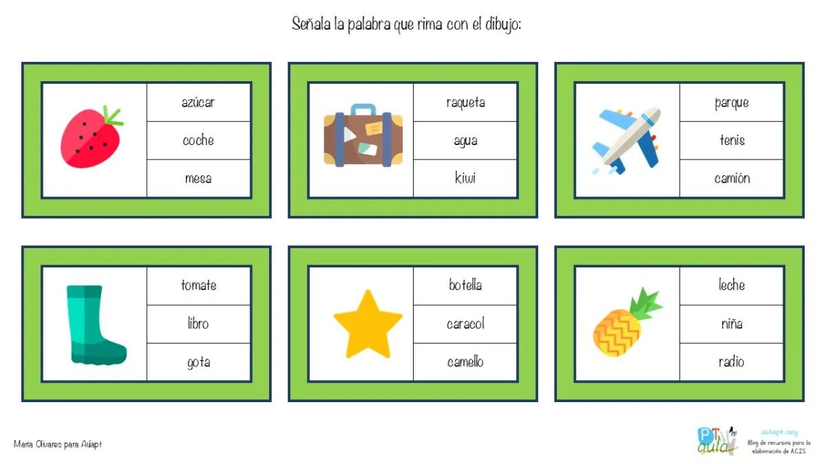 | Palabra | Tipo de Rima | Palabras que riman |