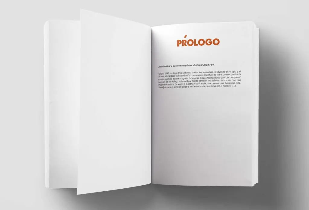 El prólogo se ubica siempre al inicio de la obra, antes del índice o cualquier otro elemento introductorio. Es la primera impresión que el lector recibe del libro.