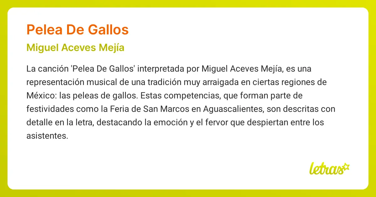 Las consultas más frecuentes sobre Pelea de Gallos suelen girar en torno a: