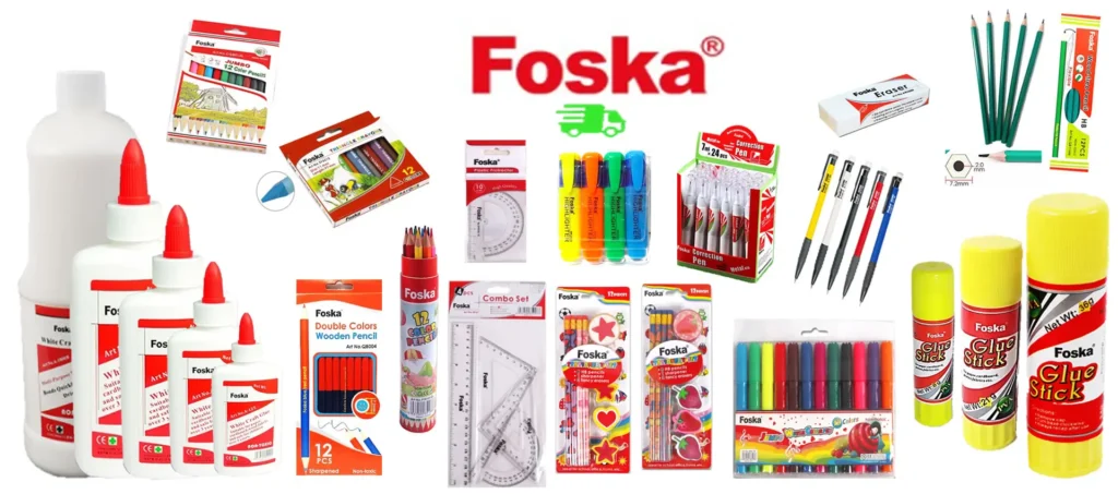 - Materiales escolares : carpetas, mochilas, estuches, tijeras, pegamentos, etc.