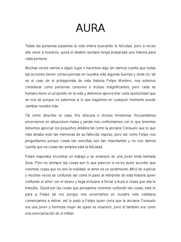 En conclusión, Aura es una novela compleja y multifacética que desafía las convenciones narrativas y ofrece al lector una experiencia literaria única. Su lectura invita a la reflexión sobre la naturaleza de la realidad y la complejidad de las relaciones humanas. La ambigüedad del texto invita a múltiples interpretaciones, consolidando su lugar como una de las obras más importantes de la literatura latinoamericana del siglo XX.