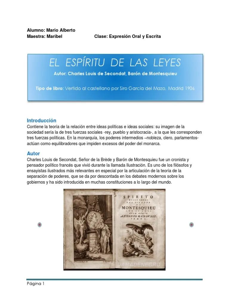 - El Espíritu de las Leyes no es un manual de instrucciones para la creación de un gobierno perfecto , sino una reflexión profunda sobre las complejas interacciones entre las leyes, la sociedad y la forma de gobierno.