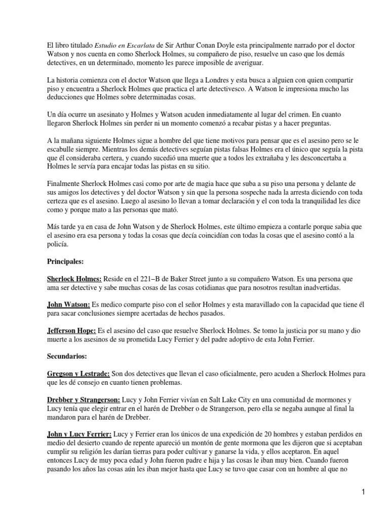 Palabras clave: Sherlock Holmes, Estudio en Escarlata, Arthur Conan Doyle, Dr. Watson, misterio, novela, resumen, análisis, venganza, justicia, deducción, Londres, Utah, mormones.