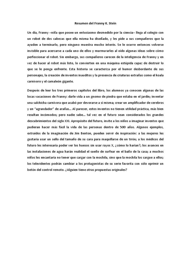 Si quieres conocer otros artículos parecidos a Resumen del libro franny k. stein: el tiempo todo lo cura puedes visitar la categoría Infantil.