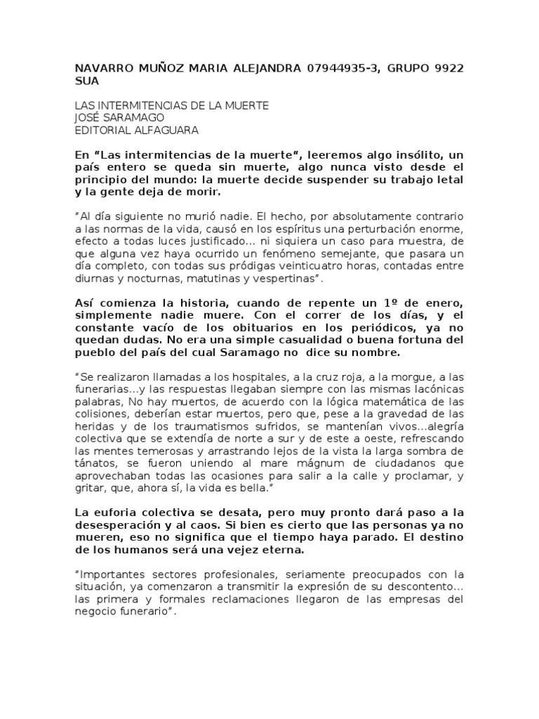 La ausencia de la muerte desencadena una serie de consecuencias negativas. El resumen del libro Las intermitencias de la muerte muestra como la falta de muerte sobrecarga los sistemas de salud, genera problemas económicos e incluso políticos, llevando a la sociedad a un estado de caos. Esta situación es una metáfora de los desafíos que enfrenta la humanidad al enfrentarse a situaciones límites.