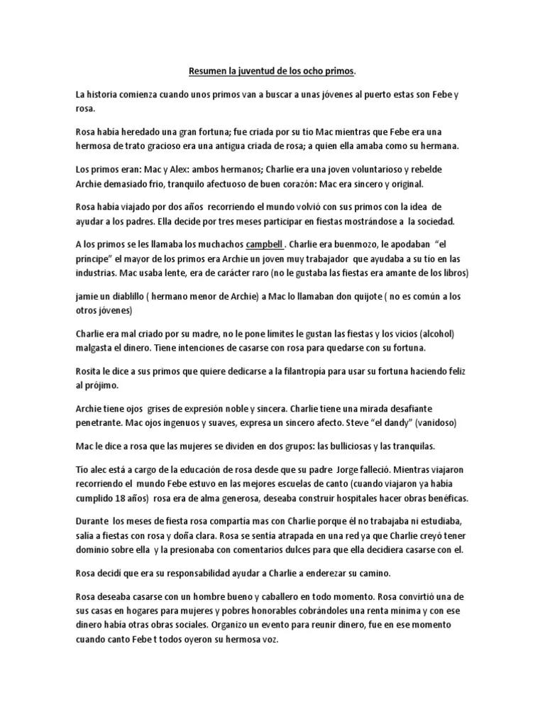 En conclusión, Ocho primos es una novela que merece ser leída y re-leída. La historia de Rose y sus ocho primos nos invita a reflexionar sobre la importancia de las relaciones humanas, el valor de la amistad y la búsqueda de nuestra propia identidad. Es un clásico de la literatura juvenil que perdura a través del tiempo gracias a su encanto, sus personajes memorables y la sabiduría que transmite.