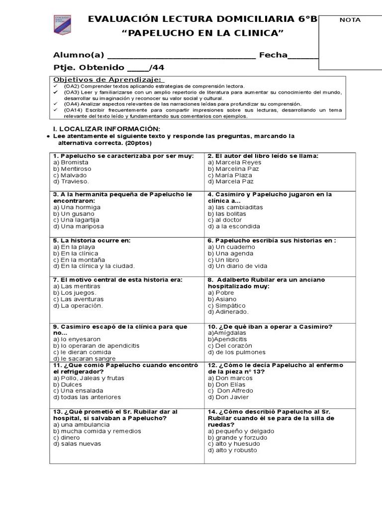 | ¿Dónde se desarrolla la historia? | En una clínica y en la casa de Papelucho. |