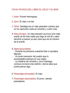 Ficha bibliográfica: el viejo y el mar de ernest hemingway