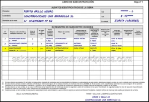 Libro de subcontratación en madrid para contratistas