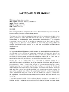 Resumen del libro las ventajas de ser invisible por capítulos