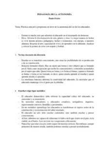 Pedagogía de la autonomía: resumen del libro de paulo freire