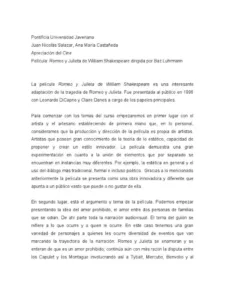 opinion de romeo y julieta brainly